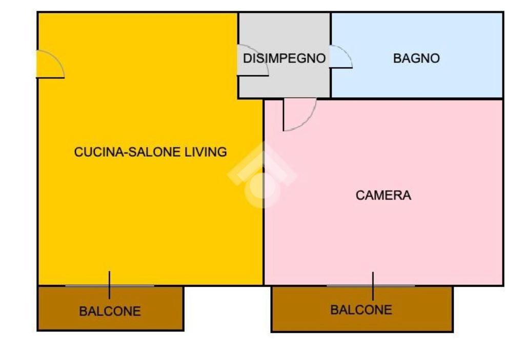 - Tipologia: Bilocale (soggiorno con angolo cottura, camera matrimoniale, bagno)